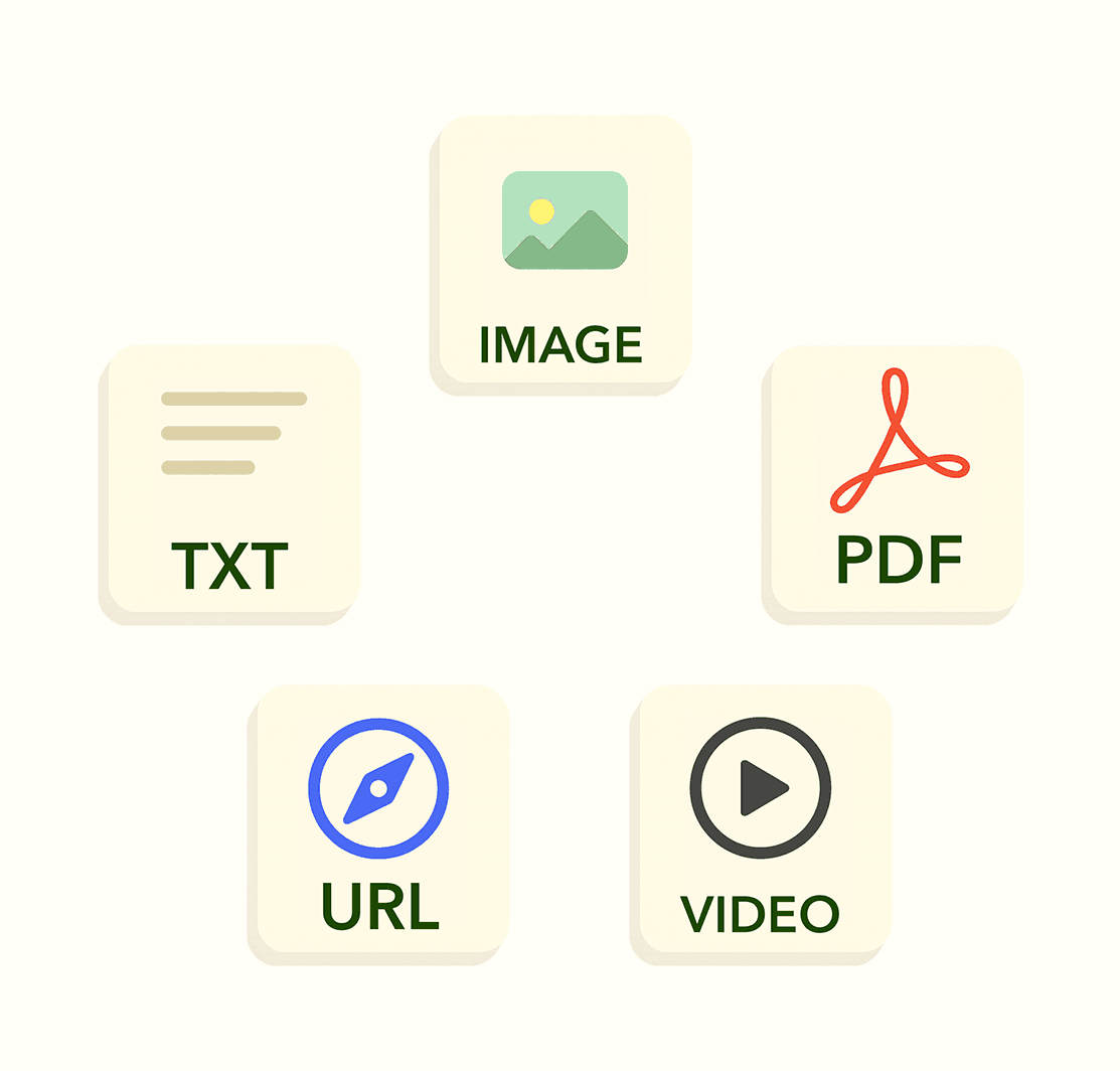 Medientypen: Bilder, Text, URLs, Videos, PDF